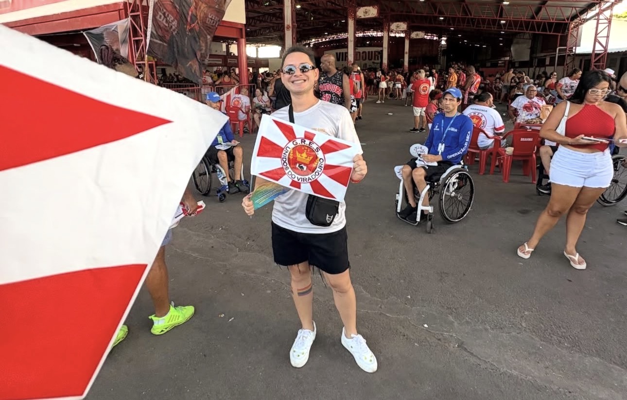 Para João Paulo Borja, 2026 foi mais um ano inesquecível. Já experiente nos desfiles do Rio, o folião reafirma sua paixão pelo Carnaval a cada temporada. Desta vez, a emoção foi ainda maior: desfilar na escola campeã e fazer parte de um momento histórico para a Viradouro e para o samba.