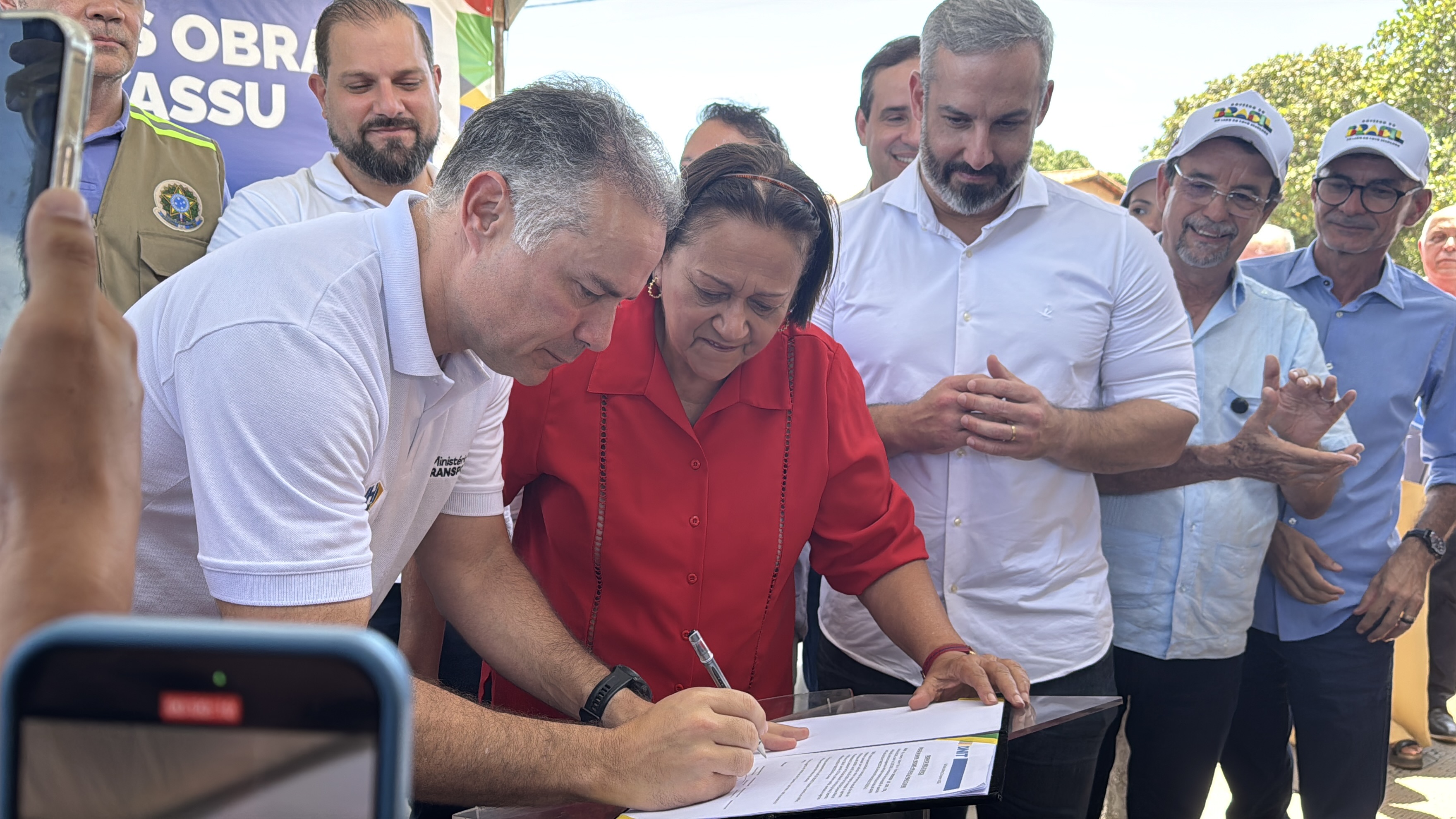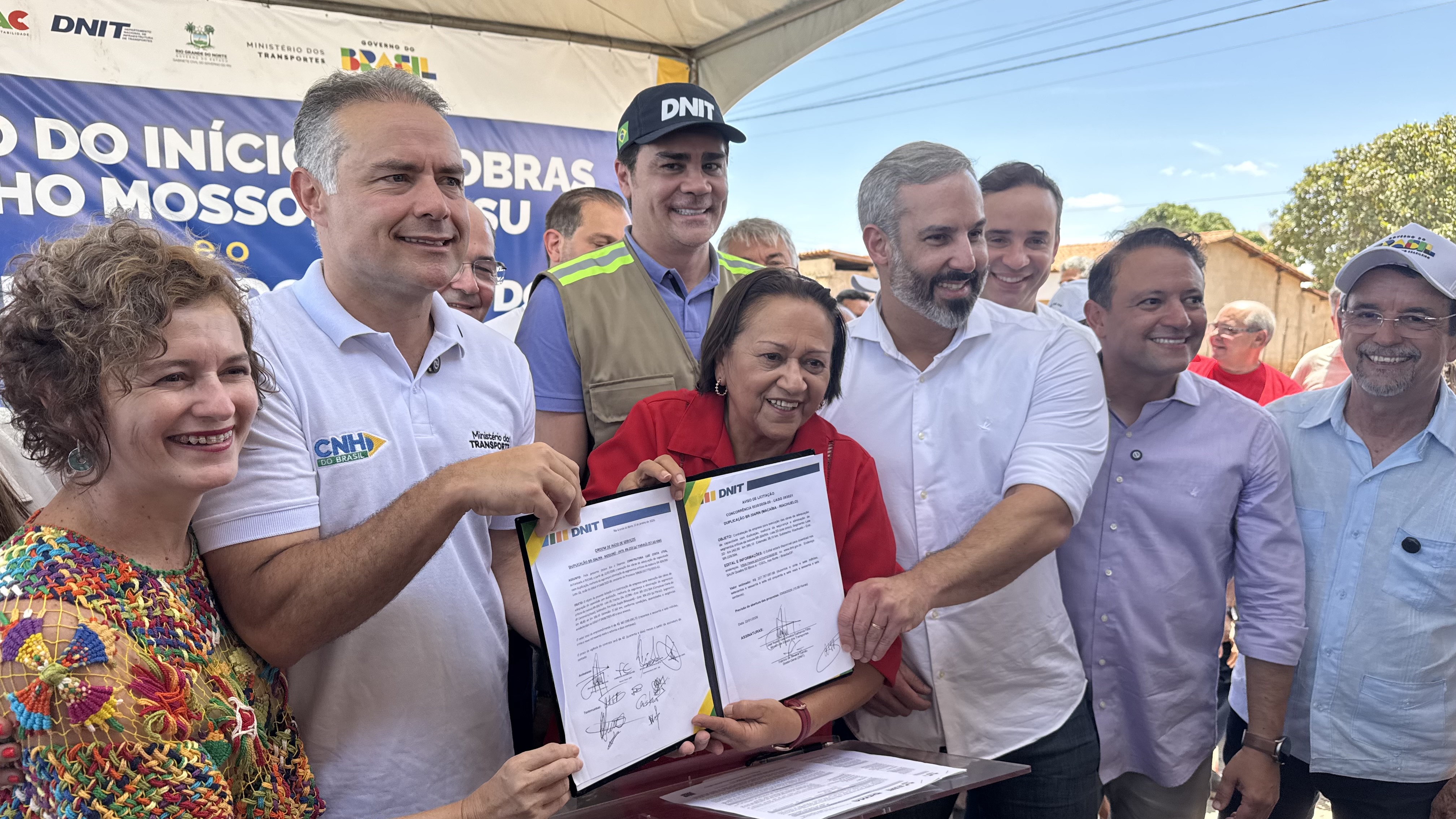 Imagem: Governadora Fátima Bezerra assina ordem de serviço, ao lado do ministro Renan Filho no entroncamento da BR-304 com a RN-233 em Assú.