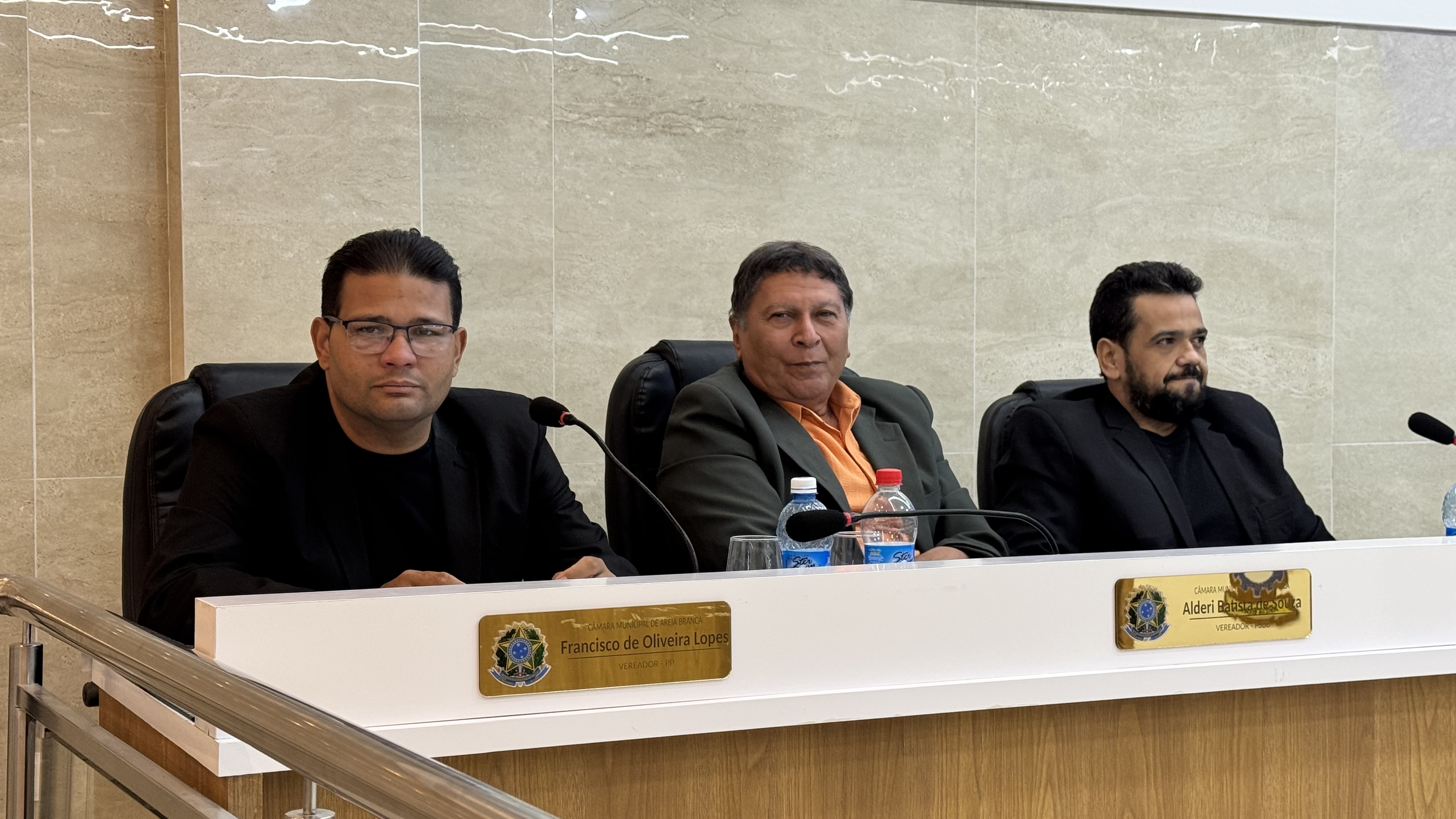Imagem: 38ª Sessão Ordinária foi presidida pelo primeiro secretário da Mesa Diretora, André Kelly (PCdoB) ao lado de Eilson Tavares e Valdinho Lima