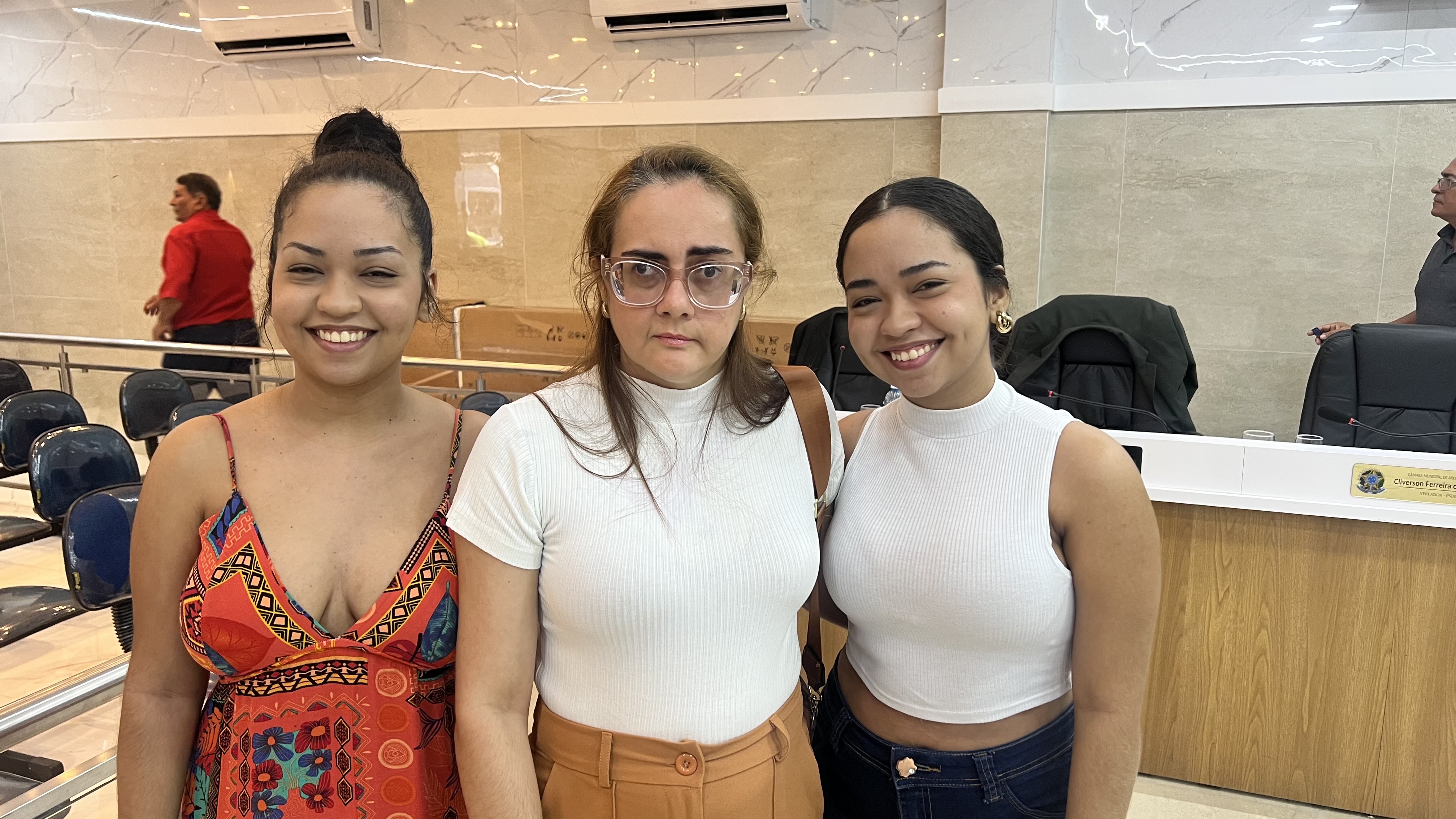 Imagem: as irmãs Clara Medeiros e Jennifer Medeiros intérpretes de libras, acompanhando Raquel Quinhões na sessão ordinária nesta terça (07)