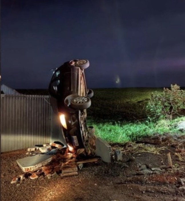 Uma vereadora de Formosa do Oeste, no oeste do Paraná, saiu ilesa após sofrer um acidente na madrugada de sábado (6),. O carro que ela dirigia capotou e parou apoiado aos pés de uma imagem de Nossa Senhora Aparecida, instalada às margens da rodovia.