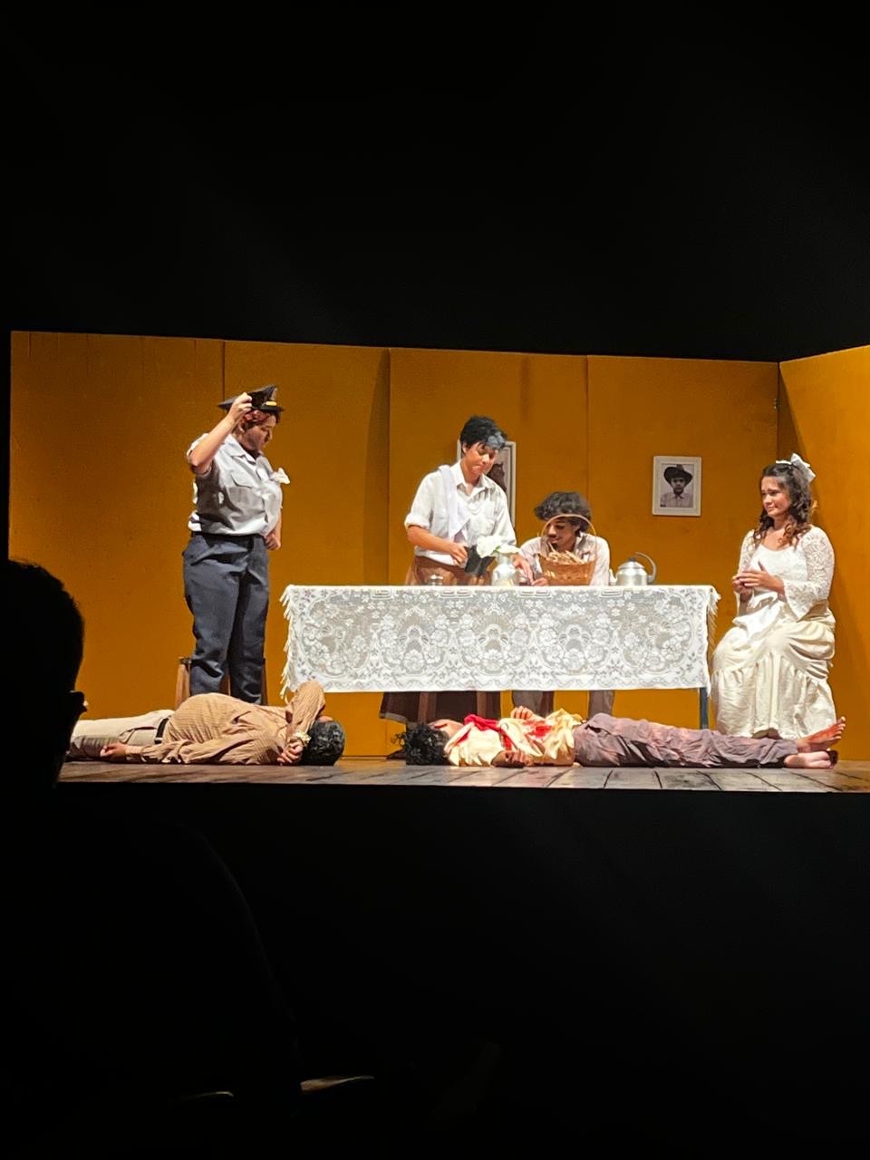 A trama, ambientada na virada do século XIX para o XX, se passa nos arredores de Areia Branca e reúne seis personagens de diferentes classes sociais que, após um ataque de cangaceiros, se veem presos no mesmo ambiente. Com doses equilibradas de humor, crítica e poesia, a peça conduz o público a uma comédia trágica e reflexiva, abordando com sensibilidade as desigualdades sociais do Brasil.