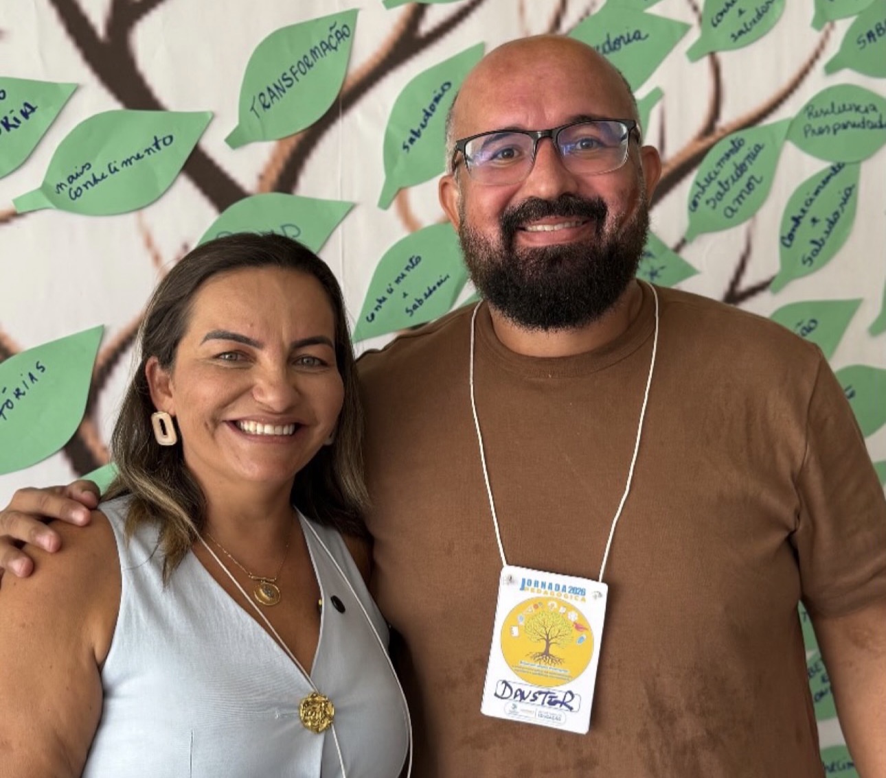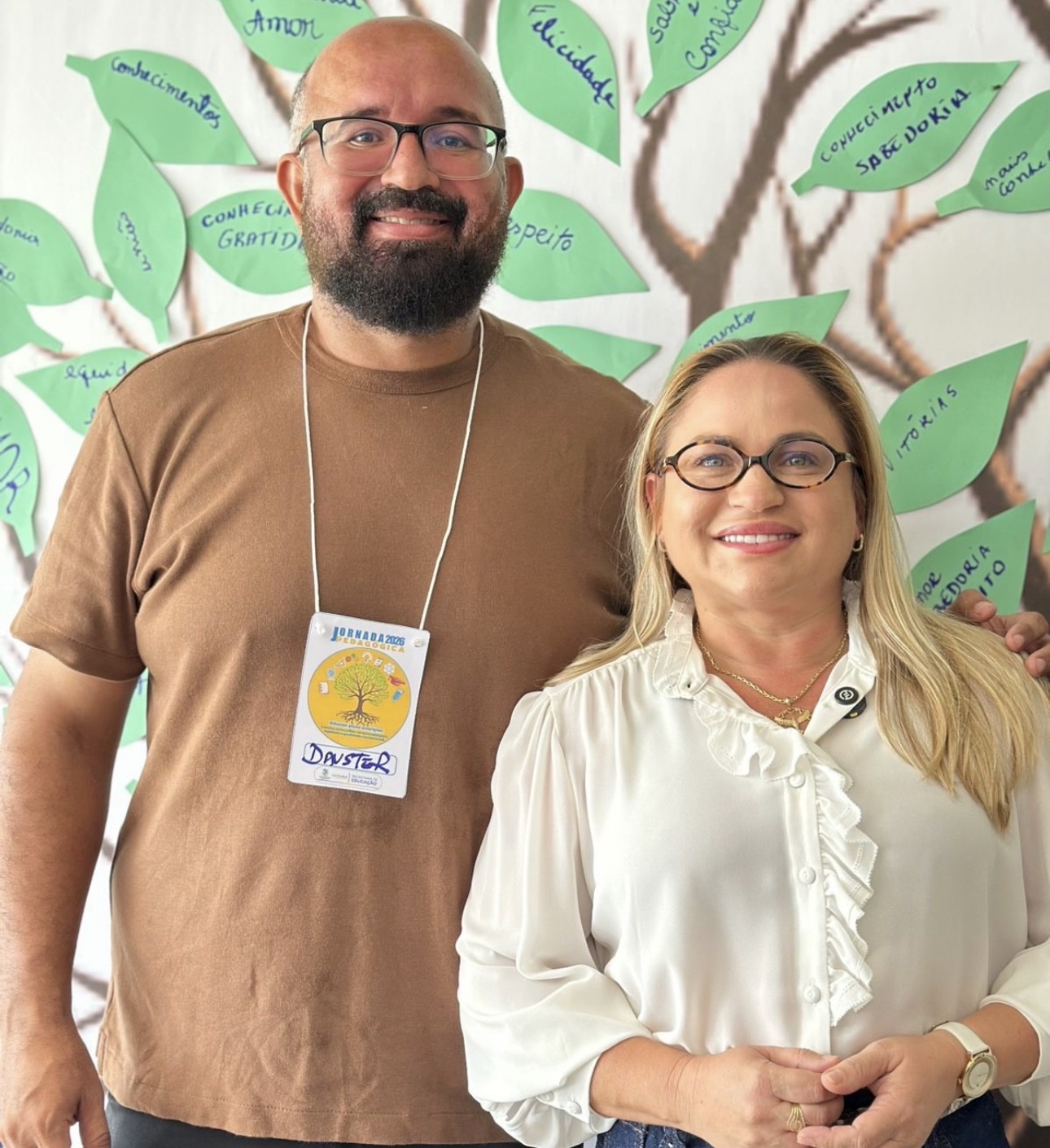 Imagem: Dauster Renard ao lado da prefeita Cinthia Sonale na Semana Pedagógica