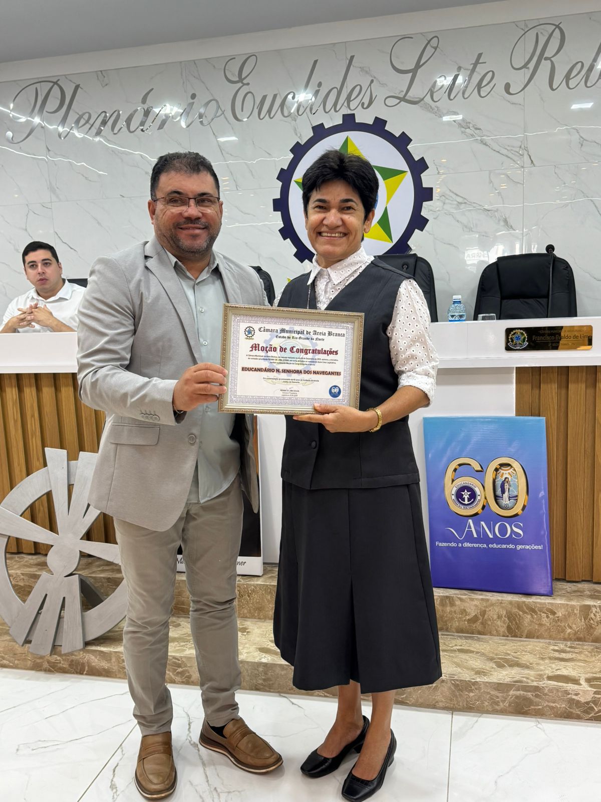 A Câmara Municipal realizou uma sessão solene em homenagem aos 60 anos do Educandário Nossa Senhora dos Navegantes, instituição que há seis décadas desempenha um papel fundamental na formação educacional, social e humana de gerações no município.