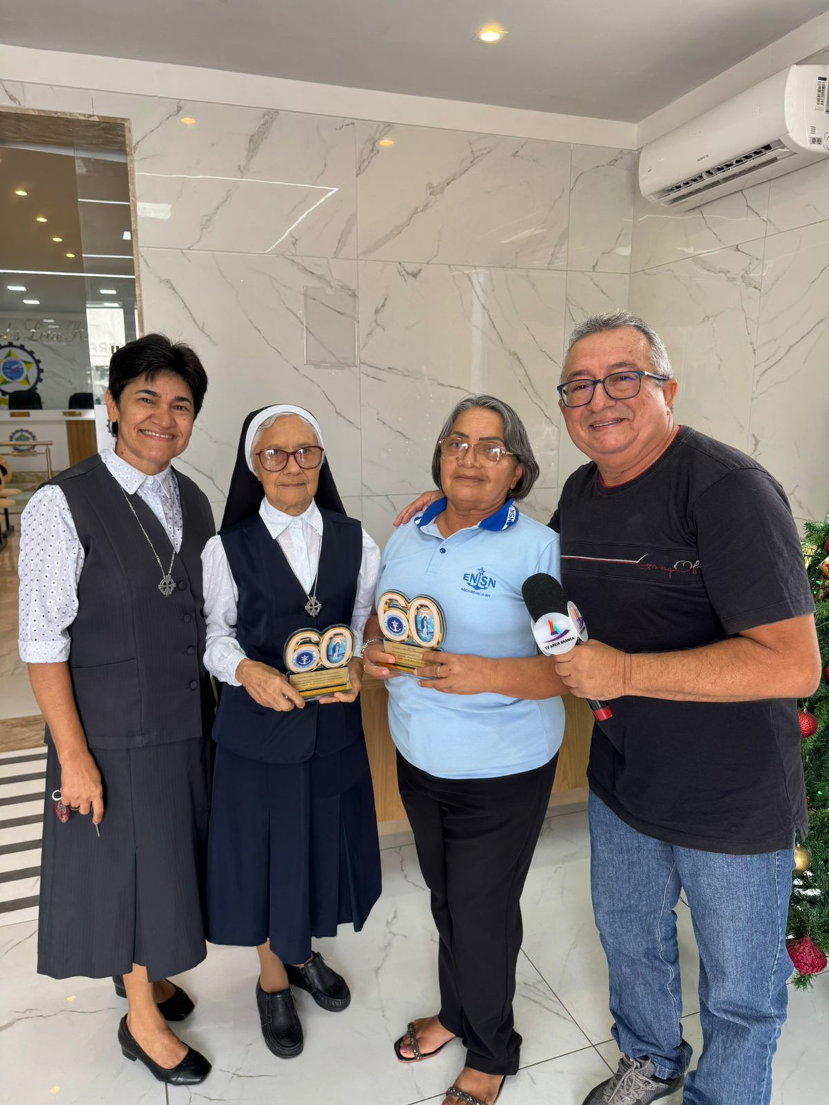 Durante a solenidade, um dos momentos mais significativos foi a entrega da Moção de Congratulações à irmã Maria José, que recebeu a honraria das mãos do vereador Sandro Góis, representando o Poder Legislativo. A homenagem reconheceu a dedicação, o compromisso e a contribuição da religiosa para a história e o fortalecimento da instituição ao longo dos anos.